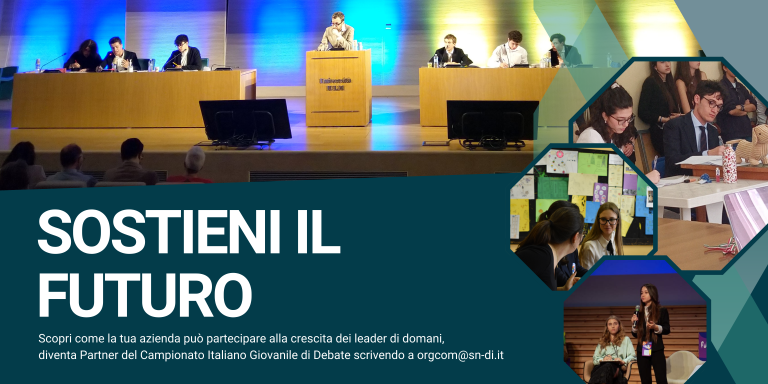 Sostenendo il Campionato Italiano Giovanile di Debate investirete nel futuro delle nuove generazioni e contribuirete a creare una società più equa e informata. Unitevi a noi in questo importante percorso di crescita e formazione.