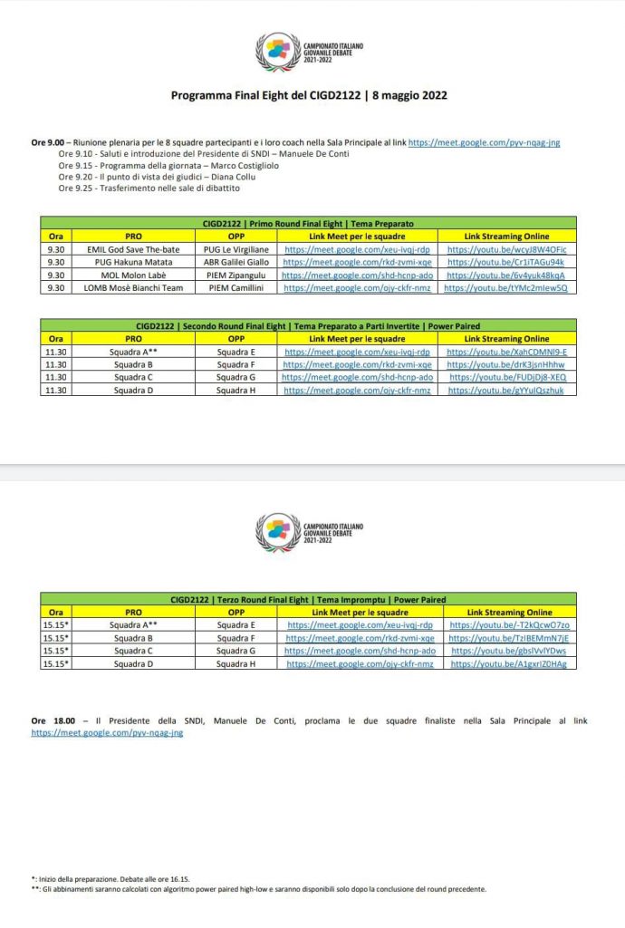 Programma Final Eight CIGD 21/22 – 8 maggio 2022