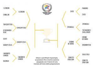 Gli ottavi di finale sono stati a tema impromptu (la mozione è stata comunicata alle squadre solo un’ora prima del dibattito e solo in quel momento sono state assegnate per estrazione le posizioni pro e contro), come anche saranno le semifinali.